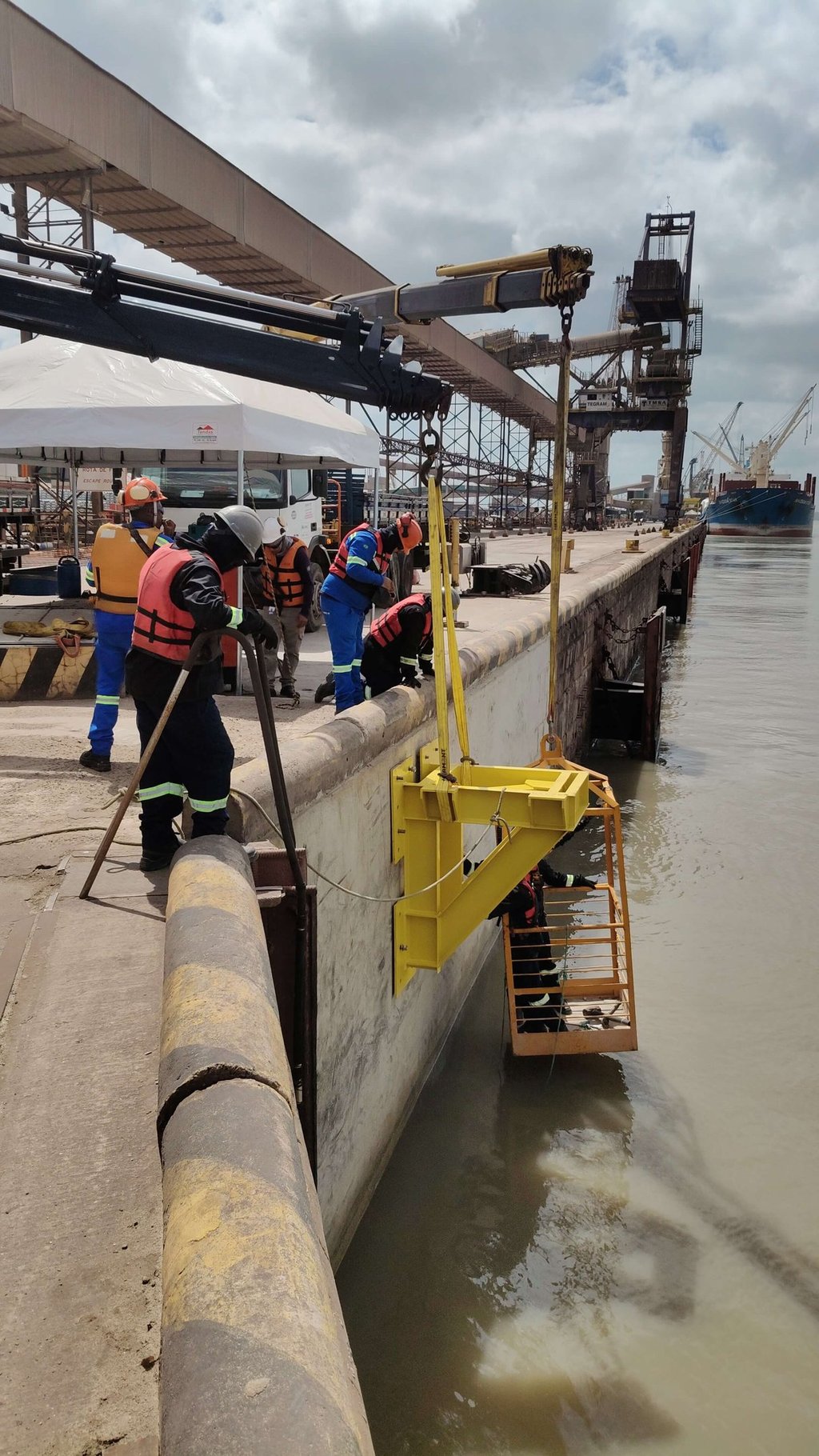 A escada metálica executada pela Mendes no Porto do Itaqui foi desenvolvida com dimensionamento preciso, montagem técnica e controle rigoroso em cada etapa, garantindo resistência e confiabilidade em um ambiente industrial de alta exigência.